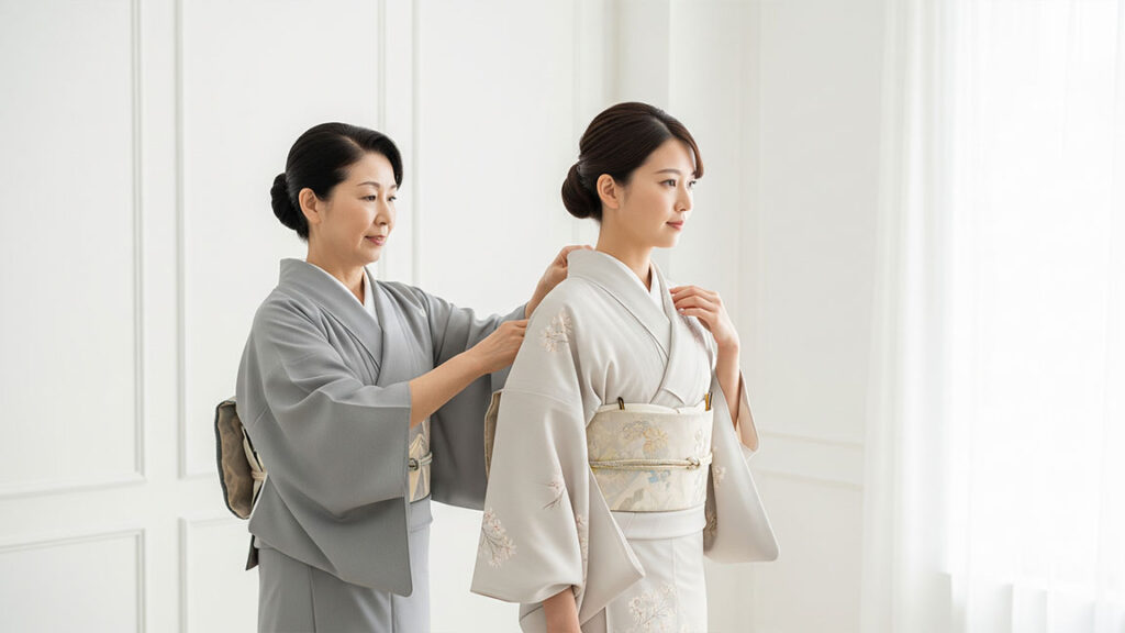 着物や帯、長襦袢、肌襦袢、足袋などの和装小物が必要です。